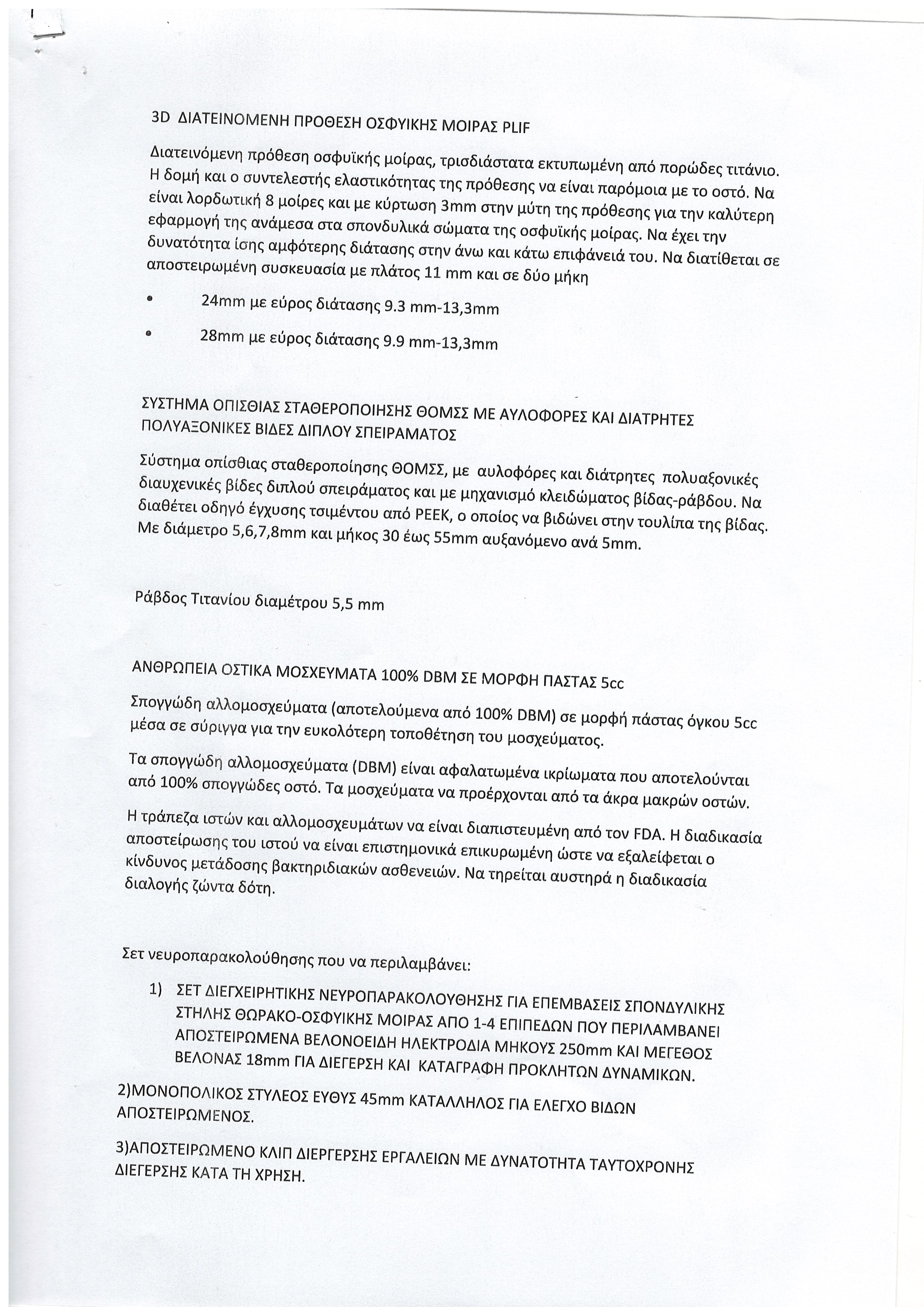 - Τα υλικά θα πρεπει να παραδιδονται την προηγούμενη της επέμβασης έως 13:00μμ και αφού σας έχει αποσταλεί η απόφαση ανάθεσης.